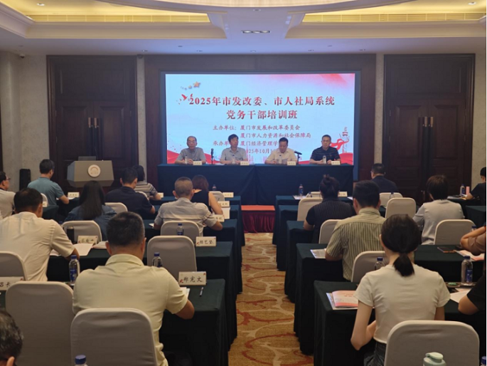 为深入学习贯彻新时代党的建设总要求,全面提升党务干部的政治素养与履职能力,10月15日至17日,由市发改委、市人社局联合主办,厦门经济管理学院承办的2025年市发改委、市人社局系统党务干部培训班,在厦门宾馆圆满落幕。市发改委、市人社局系统及市人社局对口帮扶的庄垵村、水洋村、新垵村两委干部,共计59名党务干部参加此次培训。