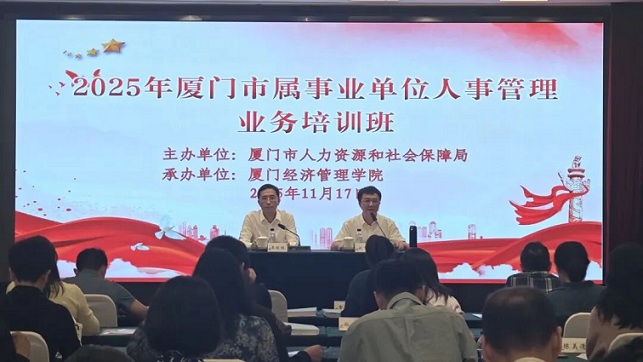 为进一步提升厦门市属事业单位人事管理工作的规范化、专业化水平,11月17日至18日,由厦门市人社局主办、厦门经济管理学院承办的2025年厦门市属事业单位人事管理业务培训班在厦门宾馆成功举办。市直各有关单位人事主管部门及下属事业单位人事干部共117位学员齐聚一堂,通过系统化学习、精准化授课、互动化交流,为厦门事业单位人事管理工作高质量发展注入新动能。